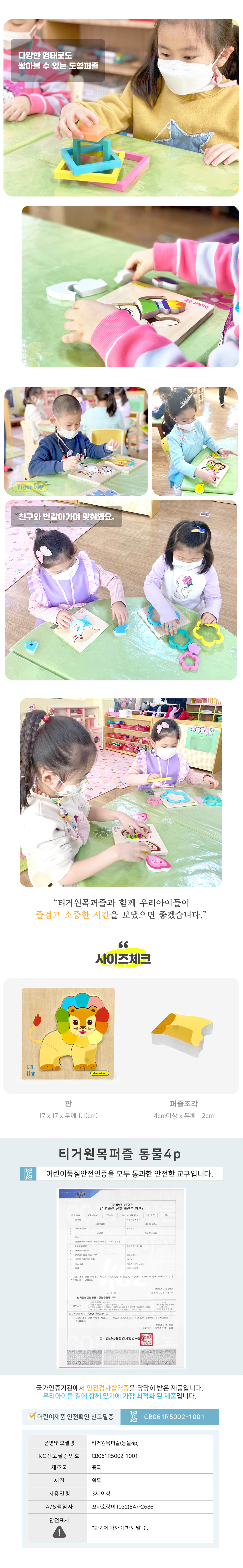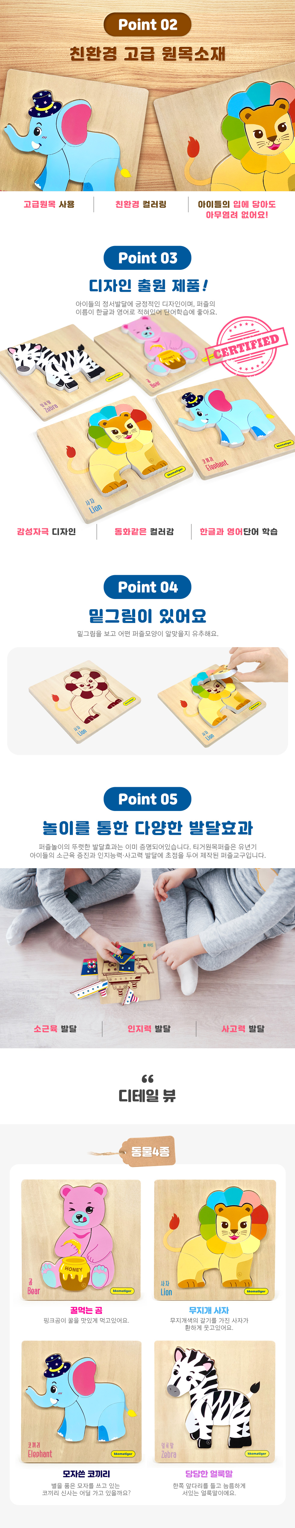 티거원목퍼즐 - 동물4p ( 퍼즐조각4cm이상 )