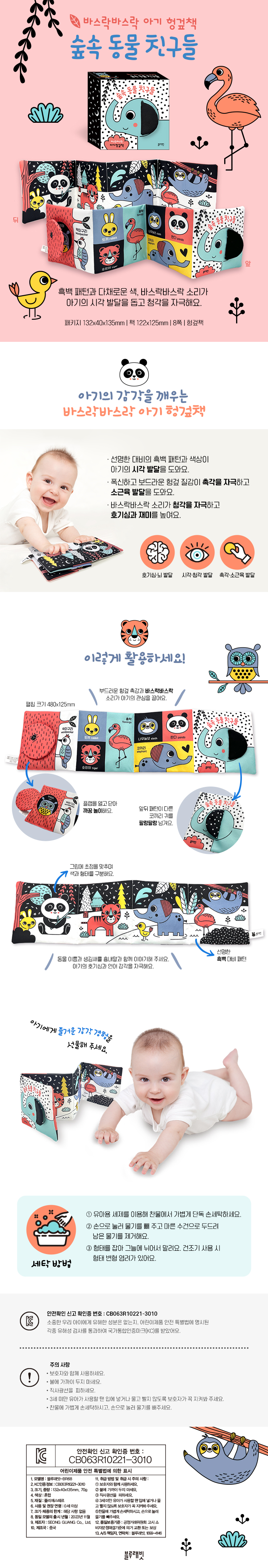 [블루래빗] 바스락바스락 아기 헝겊책-숲속 동물 친구들