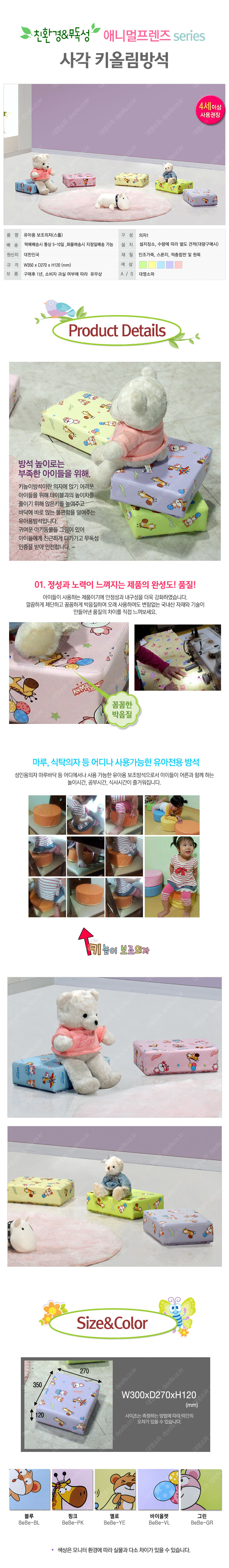 애니멀프렌즈 사각 유아용 키올림방석/색상별