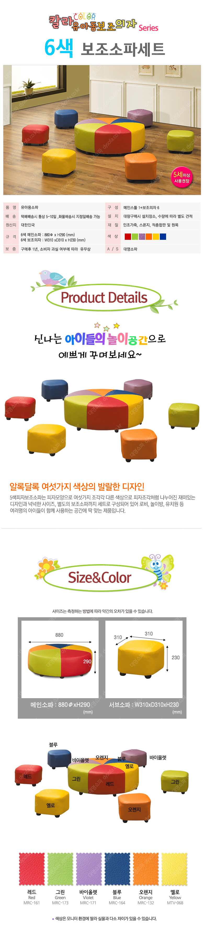 유아용 6색보조소파세트