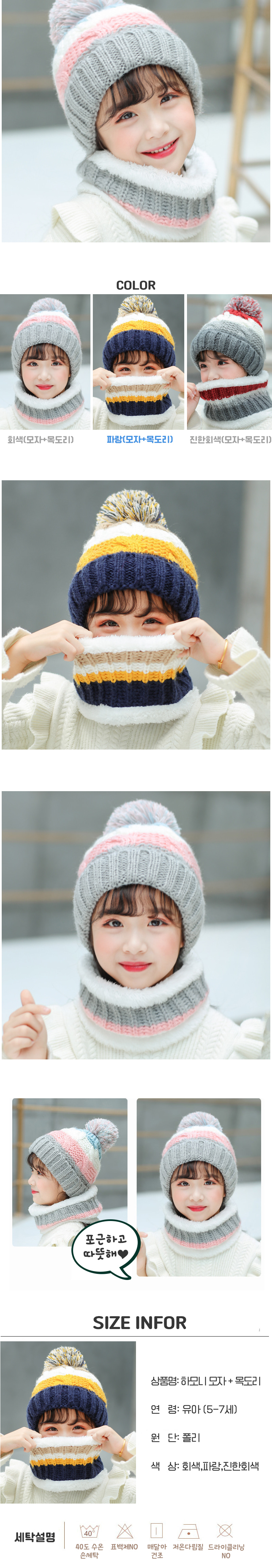 하모니 모자+목도리/블루&그레이