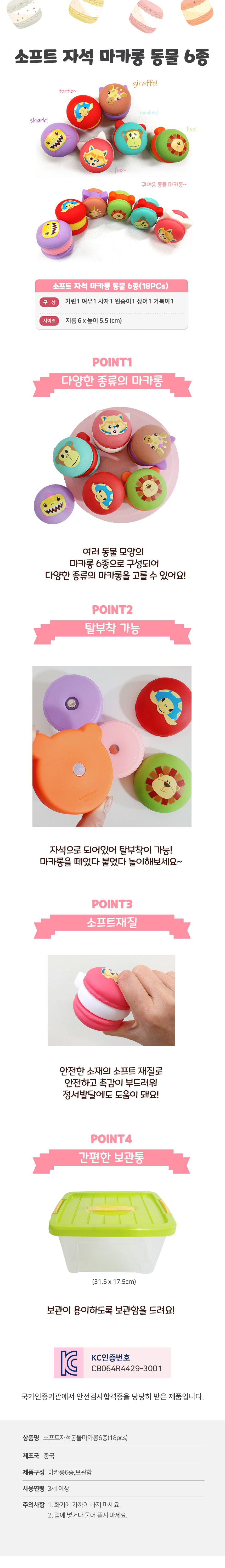 소프트 자석 동물 마카롱 6종(18pcs)